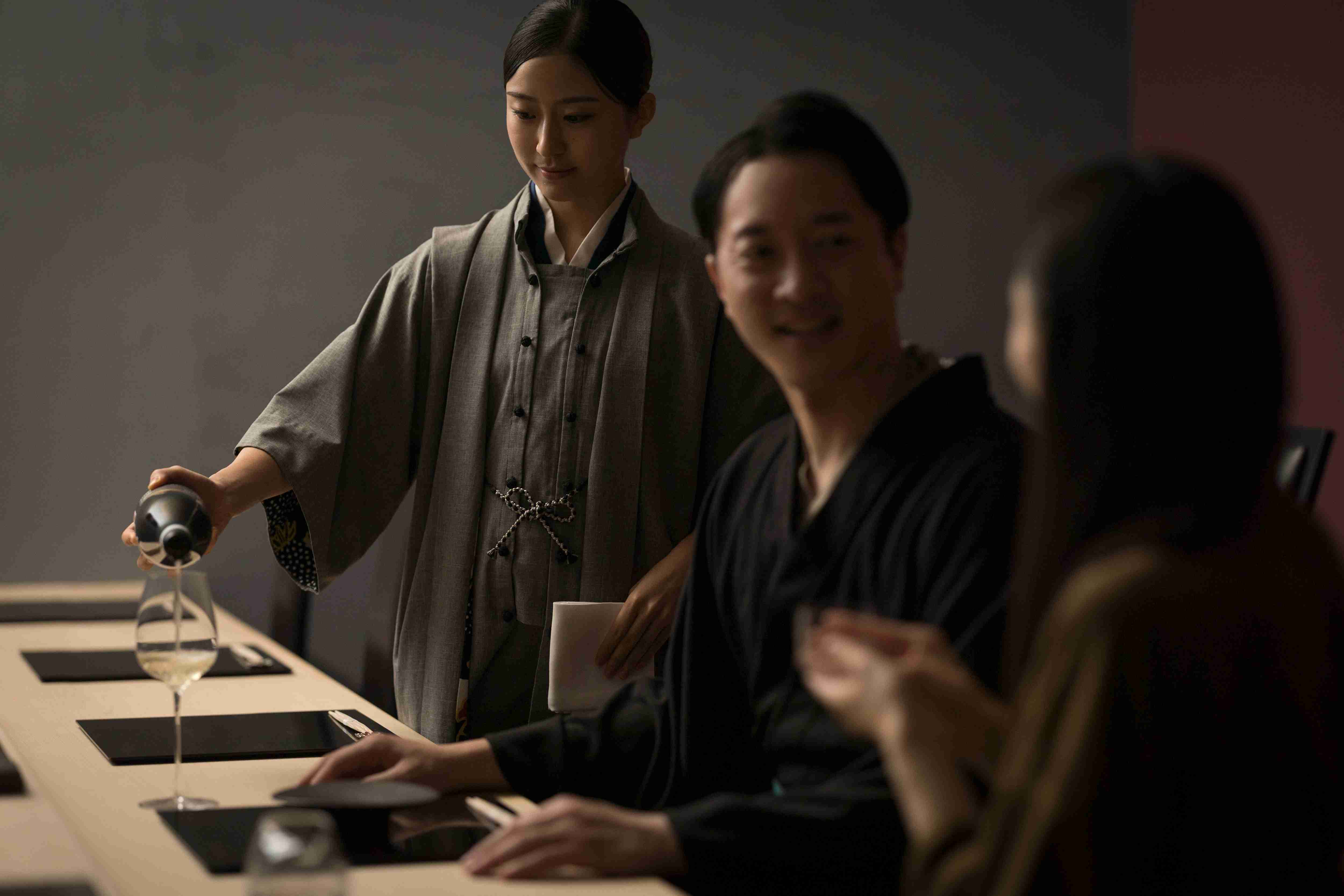一方で星のや東京は旅館です。温泉に入って、お化粧を落とし、館内着で、裸足で行ける。ここにホテルや街場の鮨店にはない気楽さがあります。だからこそスタッフには「丁寧だが身構えさせない」振る舞いを求めています。たとえば最初の一声は、形式的な説明ではなく、その日の流れをやさしく案内する。ゲストが緊張していると感じたら、会話の温度を少し上げ、文化背景が異なる方には「なぜそうするか」を補足する。凛とした空間を守りながら、距離を詰めすぎず、離れすぎない。難しいですが、旅館のサービスが得意とする領域です。