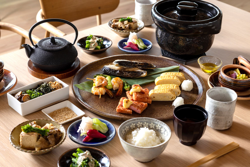 まずは「GARB CLIFF TERRACE IZUMO」を紹介する。“食から始まる地方創再生”をコンセプトに掲げる同社の地方再創生事業の例にもれず、同店の取り組みでも地元島根県の伝統的な食材や調理法が各所に用いられている。薪で火を灯し、燻香までまとわせた特製グリラーで調理されるしまね和牛、出雲シイタケのステーキ、近郊の漁港で水揚げされる地魚のブイヤベースに、薪火で皮目まであぶり香ばしく仕上げた穴子を島根県仁多郡奥出雲盆地で栽培された仁多米と共に炊き上げる”土鍋ご飯など、シェフが地元の生産者と対話することで、素材の魅力を最大限引き出す料理を提供している。今回、出雲市における取組ということで、極力島根産の食材を使っているが、この点には、地元の生産者との協業に加え、フードマイレージを限りなくゼロにしていくという同社の食材に対する姿勢も反映されている。この取り組みは、「IZUMO HOTEL THE CLIFF」宿泊のお客さまだけが食することのできる朝食にも反映されており、“目覚めのしじみエスプレッソ”からはじまり、ネッカリッチ農法で育った卵の出し巻き卵、近郊漁港でとれた鰆の西京焼き(※定期的に変更予定)、しまね和牛の肉豆腐など、島根食材をふんだんに使った和朝食が提供されている。その他パーキングエリアには、しまね和牛をつかったグルメバーガーが食せる「出雲湖陵クリフバーガー」に、木次パスチャライズミルクや「出雲桃翠園」の抹茶、奥出雲の「井上醤油店」が販売する出雲むらさきなど、出雲食材を用いたアイスクリームが食せる「クリフエンド アイスクリーム」に加え、出雲地たまごのたまごかけごはんやしまね和牛のホルモン丼などや、魚介スープで中華そばを提供する「中華そば 出雲いのうえ」が、キッチンカーラーメンスタイルで入った。