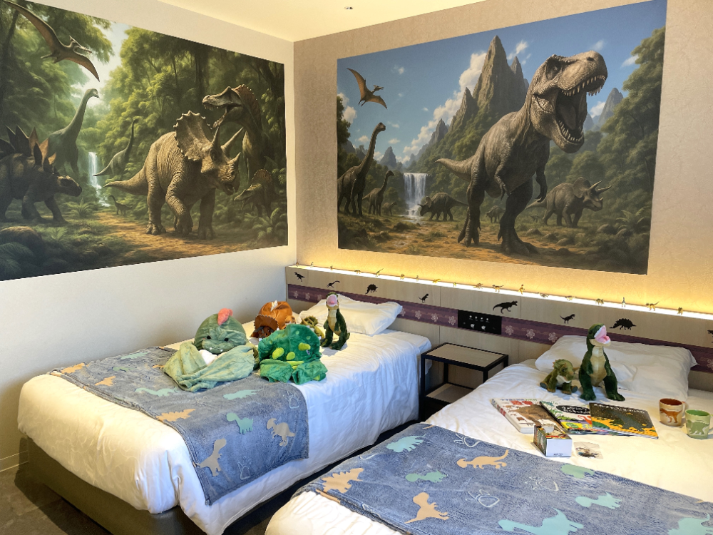 客室を恐竜のイラストや写真で装飾し、恐竜グッズや恐竜の書籍を用意。ゲストは恐竜型バルーン、卵型バスボール、恐竜グッズを特典として受け取れる。