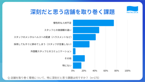 ● 調査の対象︓はたLuckアプリユーザーの店⻑・職場マネジャー(回答者数︓175名、業態︓飲⾷・アミューズメント・ホテル)