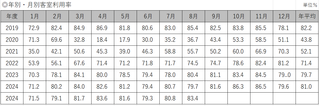 一般社団法人全日本ホテル連盟(本部・東京都千代田区)は10月10日、会員ホテルの2025年9月客室利用率の調査結果を発表した。回答ホテル数は235軒の協力ホテルのうち116軒、調査結果は速報値となる。