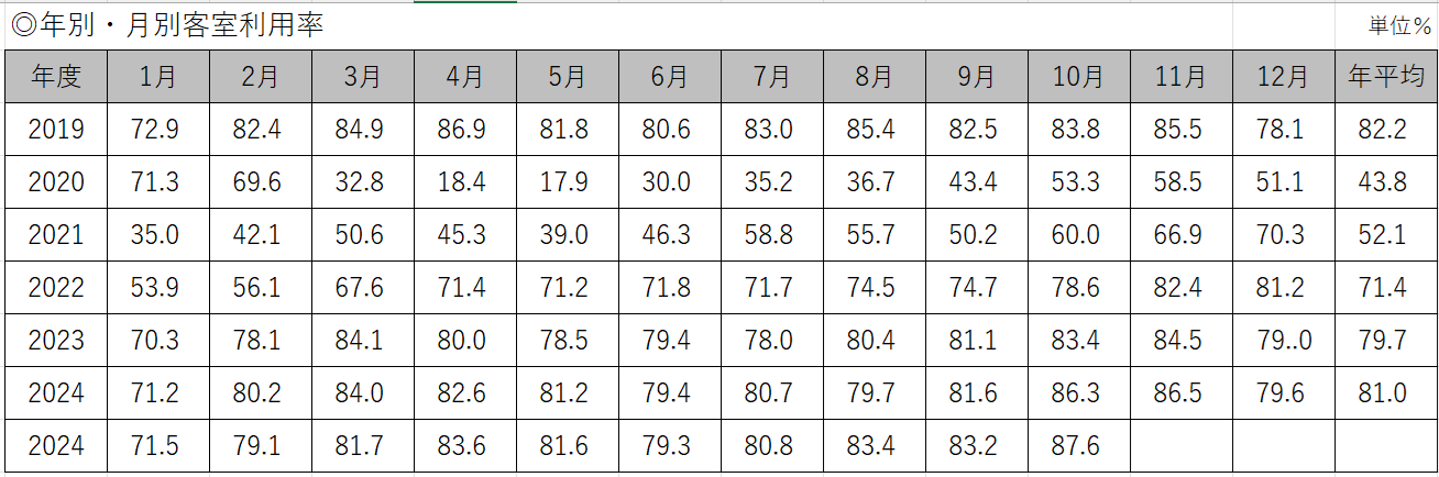 一般社団法人全日本ホテル連盟(本部・東京都千代田区)は12月10日、会員ホテルの2025年11月客室利用率の調査結果を発表した。回答ホテル数は235軒の協力ホテルのうち106軒、調査結果は速報値となる。