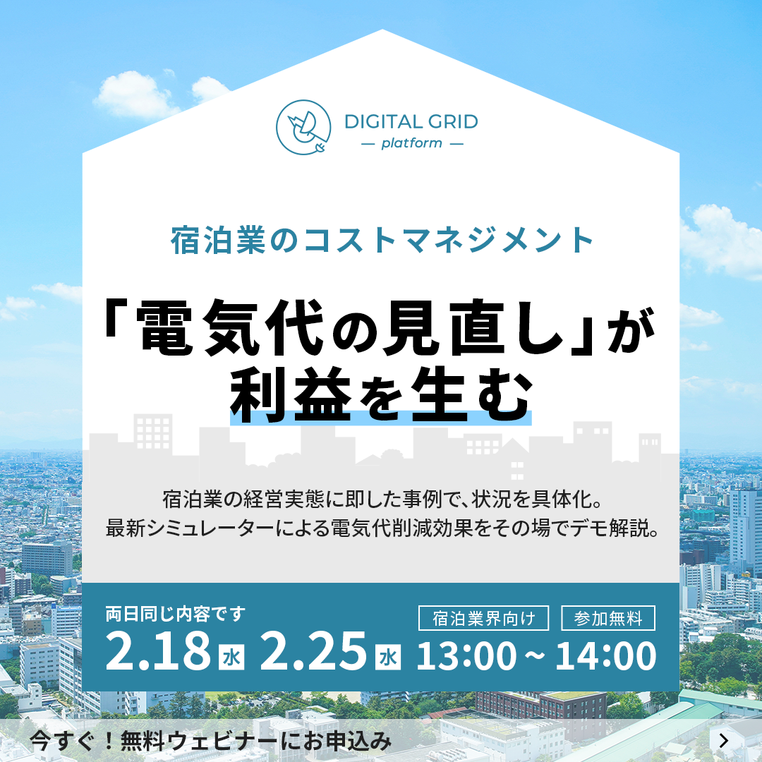 実際に電気代削減に成功した事例と、 すぐに検討できる改善ポイントを【2/18・2/15にまとめて解説】しますので、この機会を、ぜひお見逃しなく。 燃料価格の高騰を受け、多くのホテルや旅館で電気代が値上がりしています。電気代が高くなると収支のバランスが壊れ、最悪赤字になる可能性もあります。そのため、宿泊施設では今、電気代の削減が急務です。 この記事では、宿泊施設の電気代が高騰している理由とともに、電気代を削減する方法について解説します。是非ご参加ください!【編集部 林田より】