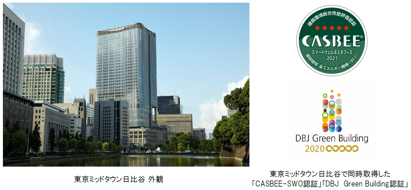 こうした同社の先進的な取り組みが評価され、東京ミッドタウン日比谷が「CASBEE-SWO認証」における最高ランク認証、および「DBJ Green Building認証」における最高位の★5を取得したと発表した。なお、両認証の最高ランクを同時に取得する施設は当社として初となる